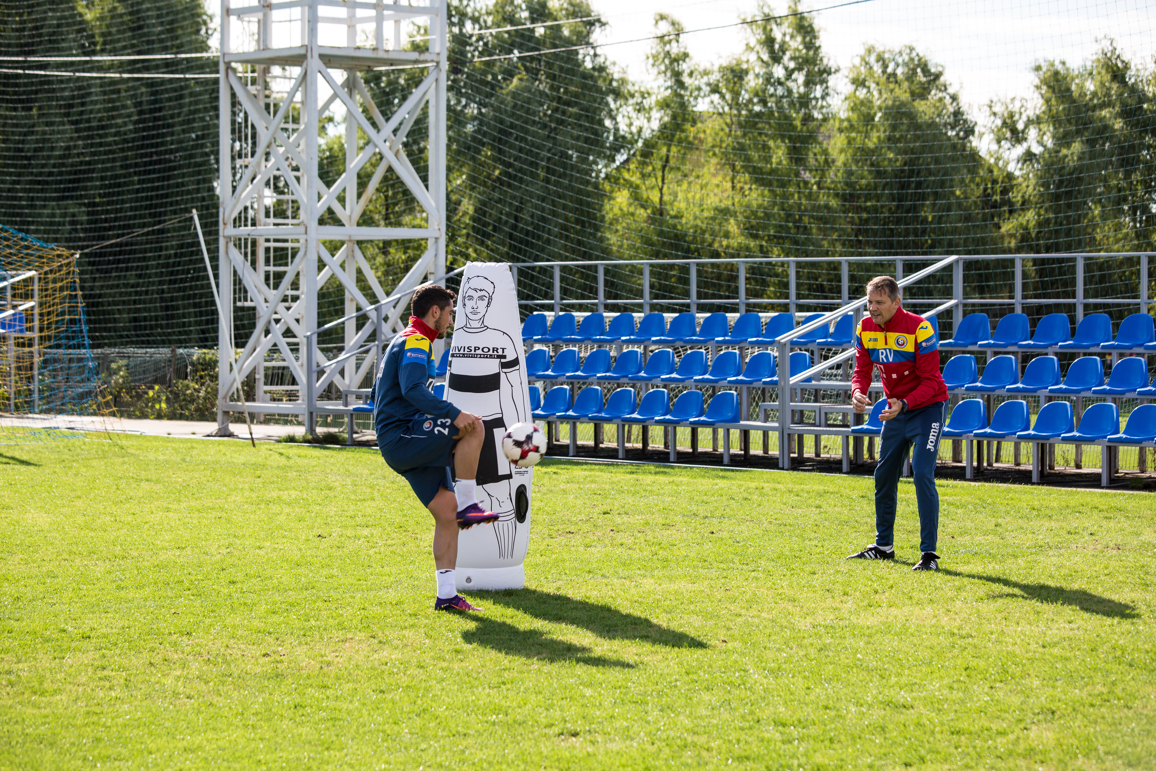 Mai exact, mijlocașii și atacanții s-au regăsit, pe rând, în centrul unui ”circuit”, între doi ”adversari” gonflabili și cu patru ținte de mici dimensiuni pe care au fost nevoiți să le nimerească.