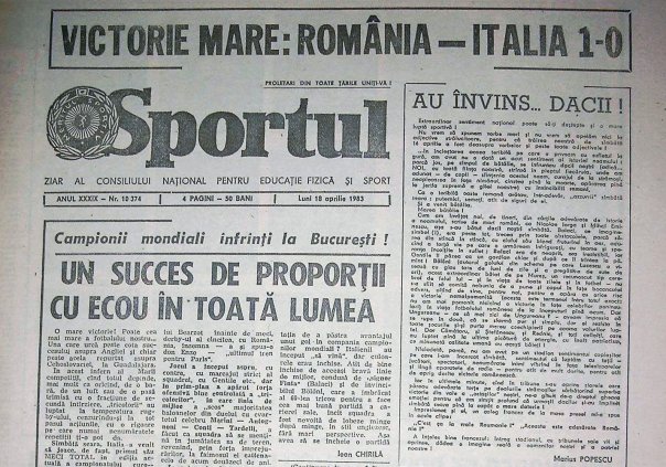 16 aprilie 1983. Pe un ”23 August” neîncăpător, reprezentativa României învingea Italia cu 1-0 în preliminariile Euro 1984. A fost prima și singura victorie oficială a ”tricolorilor” în fața unei campioane mondiale.