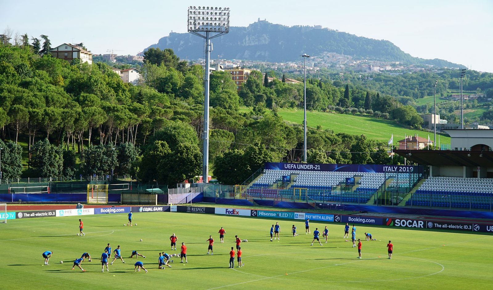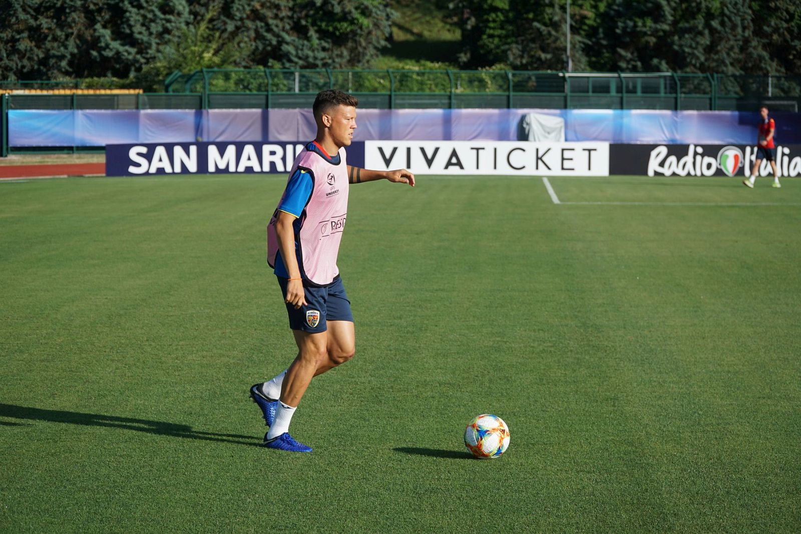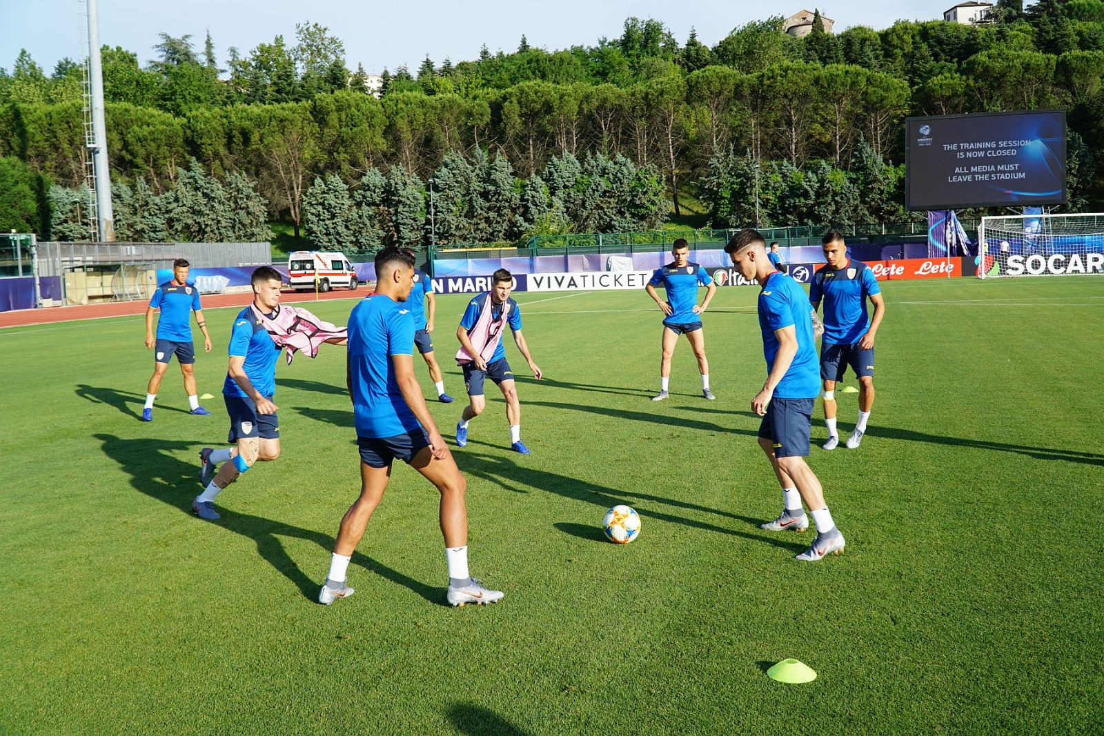 Pe Stadionul Olimpic din San Marino – Serravalle, acolo unde pe 18 iunie vor începe aventura turneului final împotriva Croației, cei 23 de jucători din lotul României au început cu clasicele alergări ușoare, sub razele intense ale unui soare care a dus termometrele la 25 de grade Celsius.