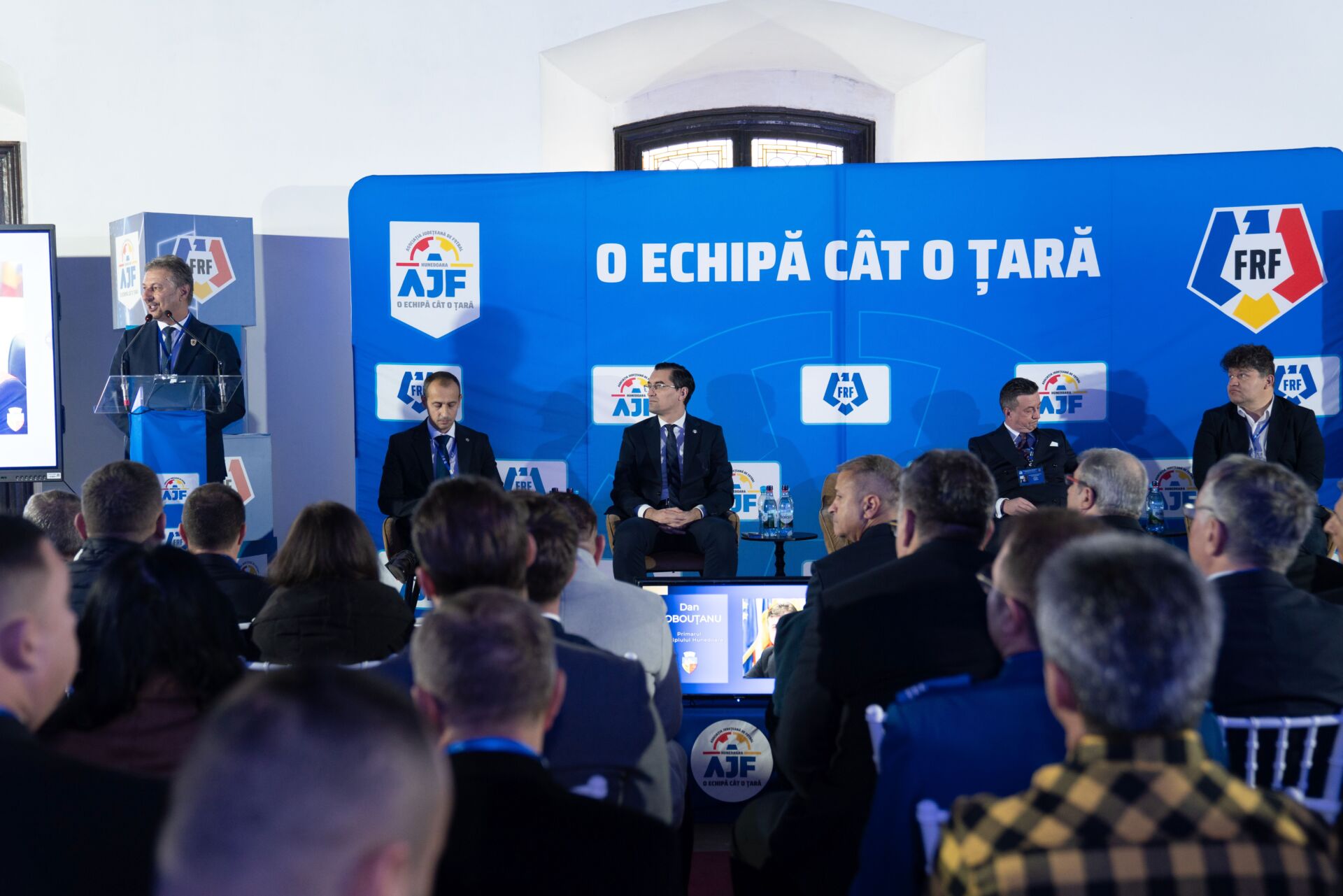 „Este o mare bucurie să mă aflu astăzi aici, în județul Hunedoara, un loc în care fotbalul este trăit cu pasiune, mândrie și continuitate. De fiecare dată când vin la Hunedoara simt aceeași energie autentică, aceeași dragoste profundă pentru acest sport care a modelat identitatea comunității timp de generații. Vreau să subliniez rolul esențial al Asociației Județene de Fotbal Hunedoara, un partener puternic și extrem de implicat al Federației Române de Fotbal. Totodată, AJF Hunedoara este una dintre asociațiile care au implementat cel mai eficient strategia tehnică a FRF, solicitând și folosind fonduri pentru proiecte de dezvoltare, ceea ce arată o preocupare constantă pentru progres”, a declarat Răzvan Burleanu.