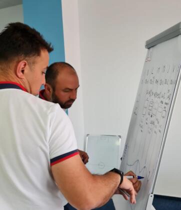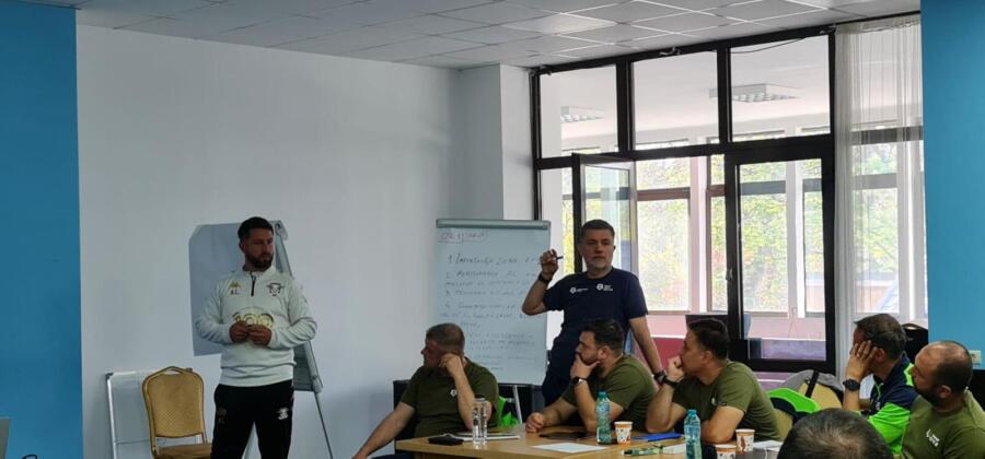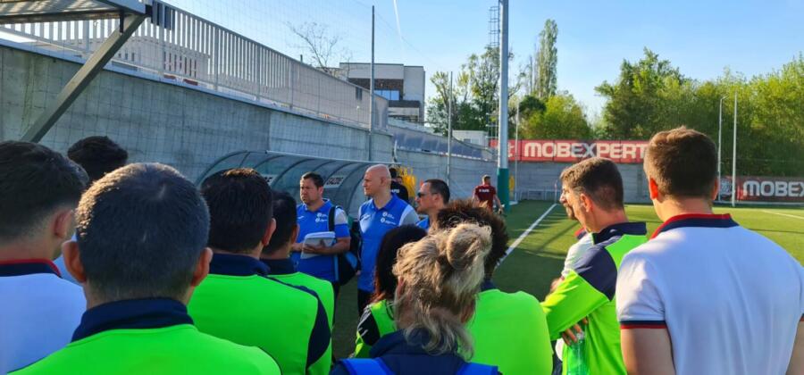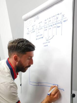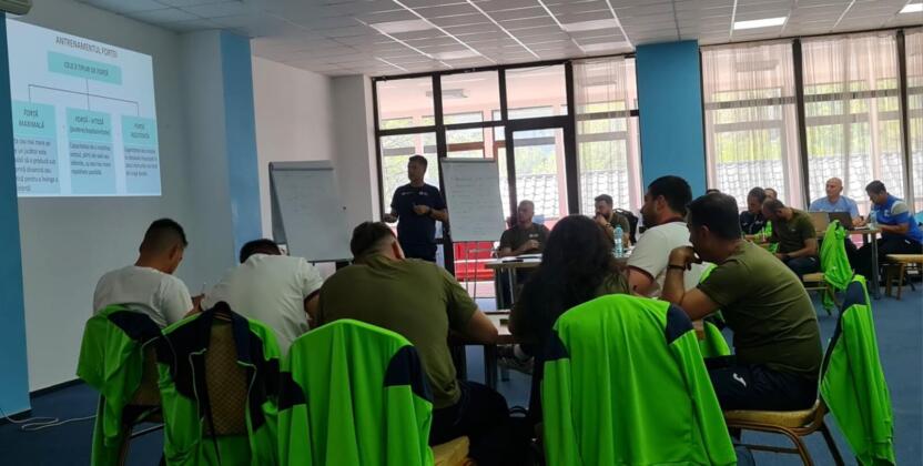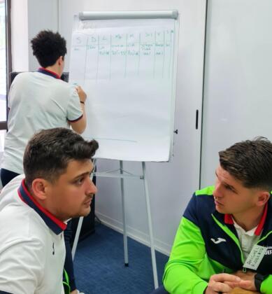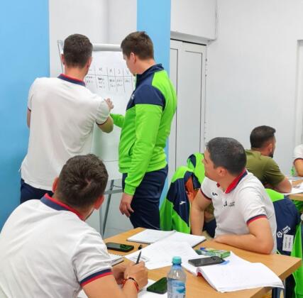 Ultima zi a modulului i-a implicat pe cursanți în lucru pe micro-grupuri cu scopul de a învăța cum să construiască o sesiune de antrenament integrat cu obiective tehnico-tactice și de dezvoltare fizică.