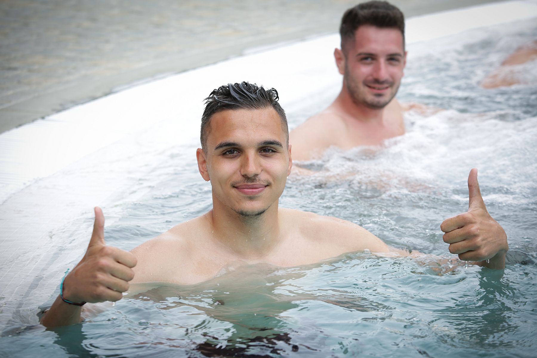 Al doilea antrenament al zile a fost unul diferit de ceea ce s-a lucrat până acum în cantonamentul din Italia. Astfel, la ora 18.30, tricolorii U21 s-au prezentat la piscina hotelului, unde, sub comanda preparatorului fizic Horațiu Baciu s-au antrenat în apă.