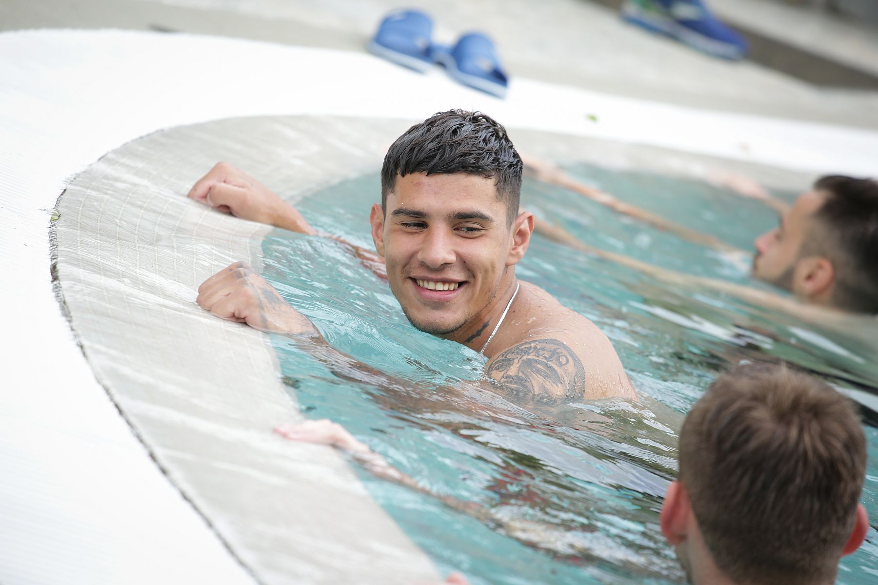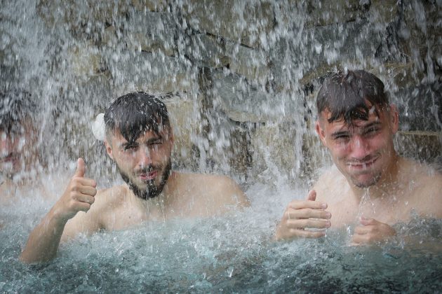 Timp de aproximativ 30 de minute jucătorii au efectuat diferite exerciții în piscină. Selecționerul Mirel Rădoi și staff-ul său au privit de pe margine și au glumit cu jucătorii. La finalul ședinței de pregătire jucătorii au avut la dispoziție 20 de minute de distracție.